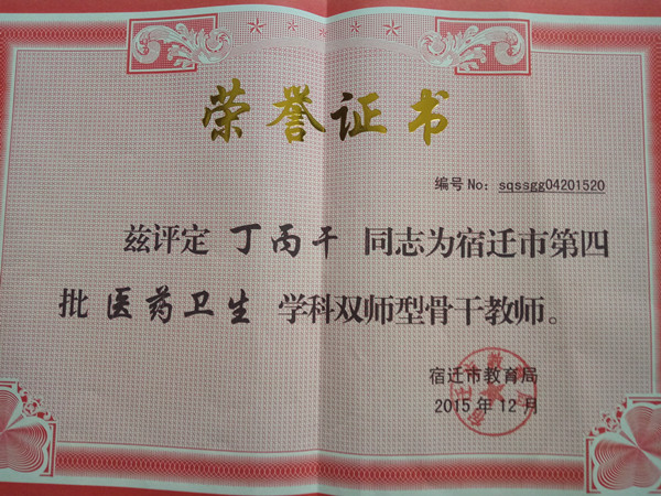 近日,宿迁市教育局公布了第四批医药卫生学科双师型骨干教师称号名单,kaiyun开云(中国)官方在线登录教务处处长丁丙干同志获此殊荣。