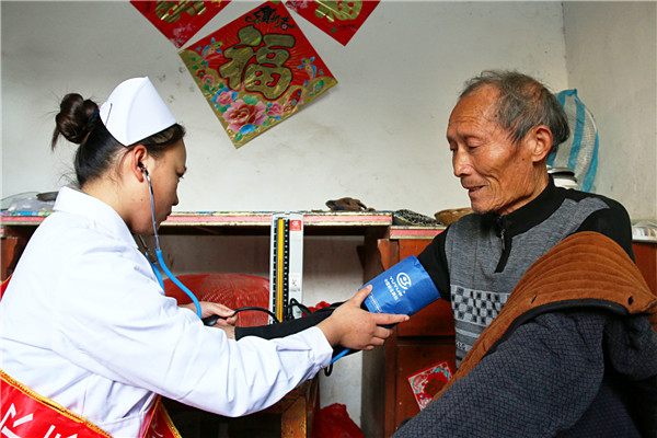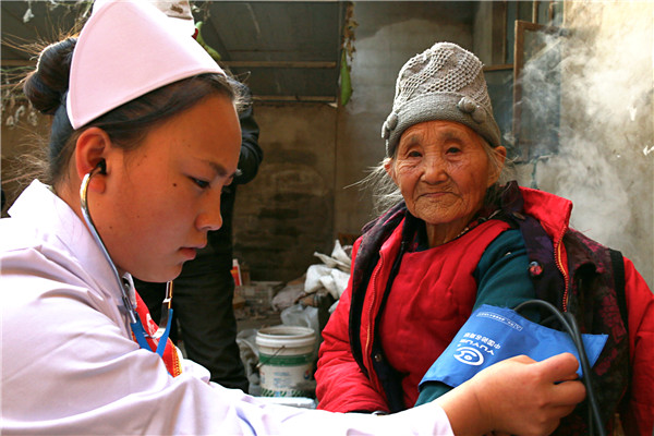 当身穿护士服的志愿者们一出现,大家便十分的关注,纷纷上前询问,当了解到要为五保老人们送医送药,大家都举起大拇指夸赞政策好,五保户需要关爱与照顾。
