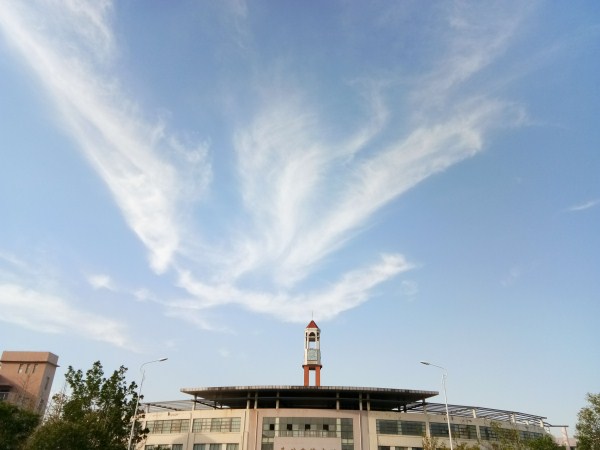 雨后初晴,天空显得清澈的蓝,几朵云缓缓飘过---雨后的天气总是显得格外温柔。“叮叮。。。”屹立在基础实验楼后略显苍的钟楼指针指在了5:00.时间临近傍晚,天空迎来了最美丽的景色---夕阳。