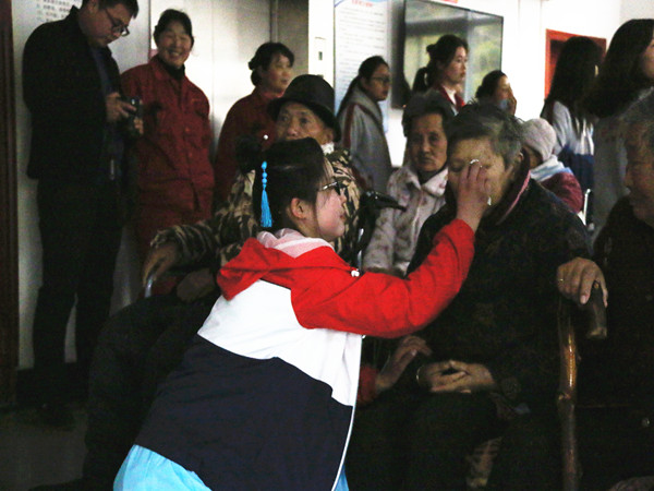 “你问我爱你有多深,月亮代表我的心……”音乐社同学带来的的小合唱《月亮代表我的心》将演出拉开帷幕,老人们激动的跟着音乐,有节奏的打着拍子。舞蹈社王苏婉同学的《浮生词》、瑜伽社刘欢的《舞韵瑜伽.繁花》更是将全场气氛推到了高潮。优美的歌声、动人的旋律和柔美的舞蹈赢得了老人的热烈掌声,互动环节更是温情无限,为平日宁静的养老院增添了许多欢声笑语。