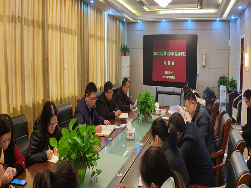 2021年12月2日下午,在行政楼三楼接待室,我校信息中心组织了第63次全国计算机等级考试考务工作会议。 副校长王立、各系部主任、后勤处、保卫处、信息中心及监考教师参加了会议,会议由王立主持。
