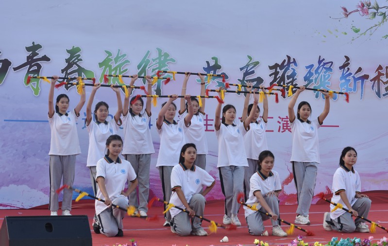 16点舞蹈团表演的钱杆舞极具地方特色,作为江苏省重要的非物质文化遗产项目,舞者们手中的钱杆上下翻飞,每一次摆动都充满活力。他们将民俗文化的独特魅力展现得淋漓尽致,让同学们感受到传统文化的博大精深。